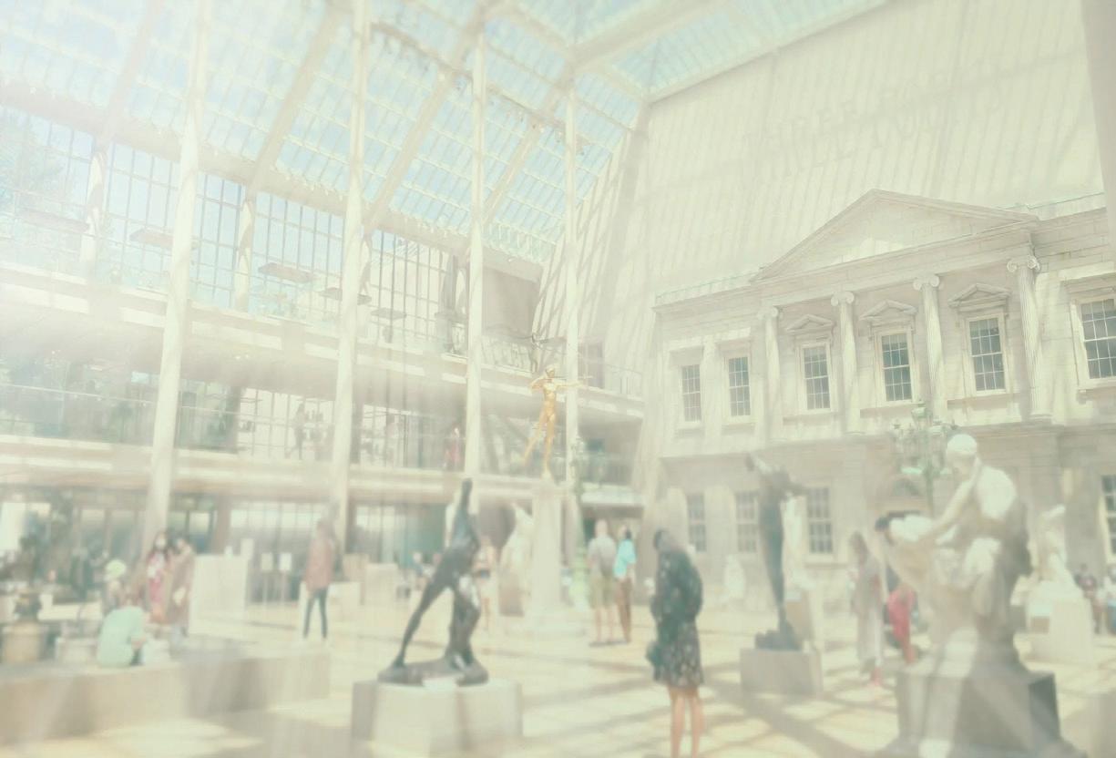 Upon reaching the fourth floor, a golden sculpture of a flying female figure appears in front of another vibrant blue wall. Though a striking setting, the sculpture, depicting the allegorical figure of Victory is too small for the grandeur it aims to convey. It’s an adaptation of Augustus Saint-Gaudens's General William Tecumseh Sherman Monument in New York.
