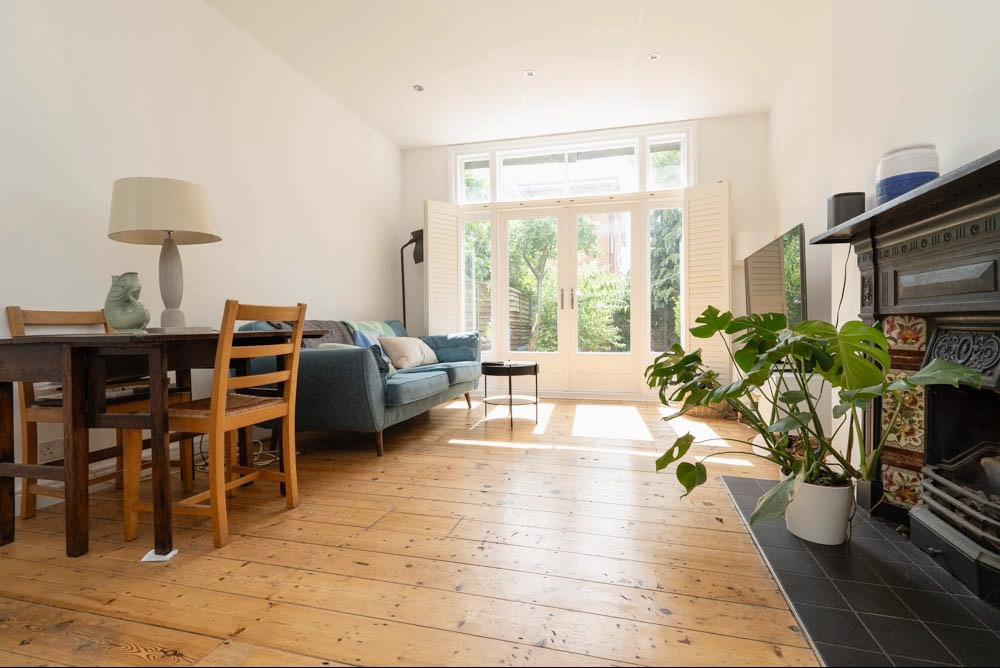 At the front of the property, the generously sized bay-fronted main bedroom offers a beautifully bright sanctuary. Dressed with elegant wooden shutter blinds, rich wood flooring, and a charming feature cast iron fireplace, this room is both stylish and restful, the perfect place to recharge after a long day. Fitted base storage within the chimney recess adds a practical touch without compromising the room’s timeless appeal.