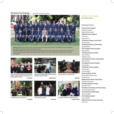 Stowe School, England Siddhant Sachdev Aditya Vikram Gupta Millfield School, England Yash Jalan Arjun Parmar St Stithians College, South Africa Shivam Goyal Deerfield Academy, United States Ujjwal Dahuja The Armidale School, Australia Raghav Nath The King’s School, Australia Arjun Khaitan Siddharth Kaul Saint Andrew’s School, United States Nivit Kochhar The Regent’s School, Thailand Avik Gugalia St Edward’s School, England Aviral Gupta Zorawar Whig King’s Academy, Jordan Banda Mann Singh Lamba Animesh Jain Bridge House School, South Africa Sanat Kumar Thakur St Philips College, Australia Shantanu Seth Brookhouse International School, Kenya Jai Pratap Singh Kairon Groton School, United States Karan Shinghal Eton College, England Yuv Vir Khosla Ballarat Grammar School, Australia Yash Johri