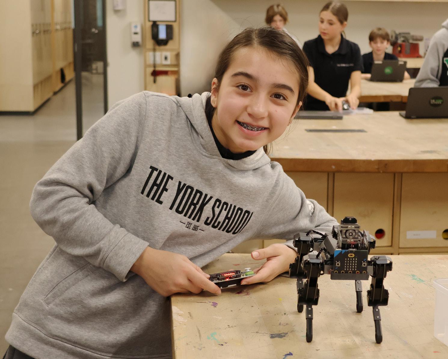 The York School has always embraced emerging technologies that support exceptional learning experiences. Students from JK to Grade 12 use ageand-stage appropriate tools to help ensure they have the STEAM (Science, Technology, Engineering, Arts and Math) fluency they will need to succeed beyond York. This past year, our students participated in a slate of initiatives and projects that engaged and challenged them. Alongside the students, the faculty and staff engaged in a year-long investigation focused entirely on AI and its impact on teaching and learning. In collaboration with Future Design School, two full days of professional development time were devoted to playing and exploring with these new tools and platforms.