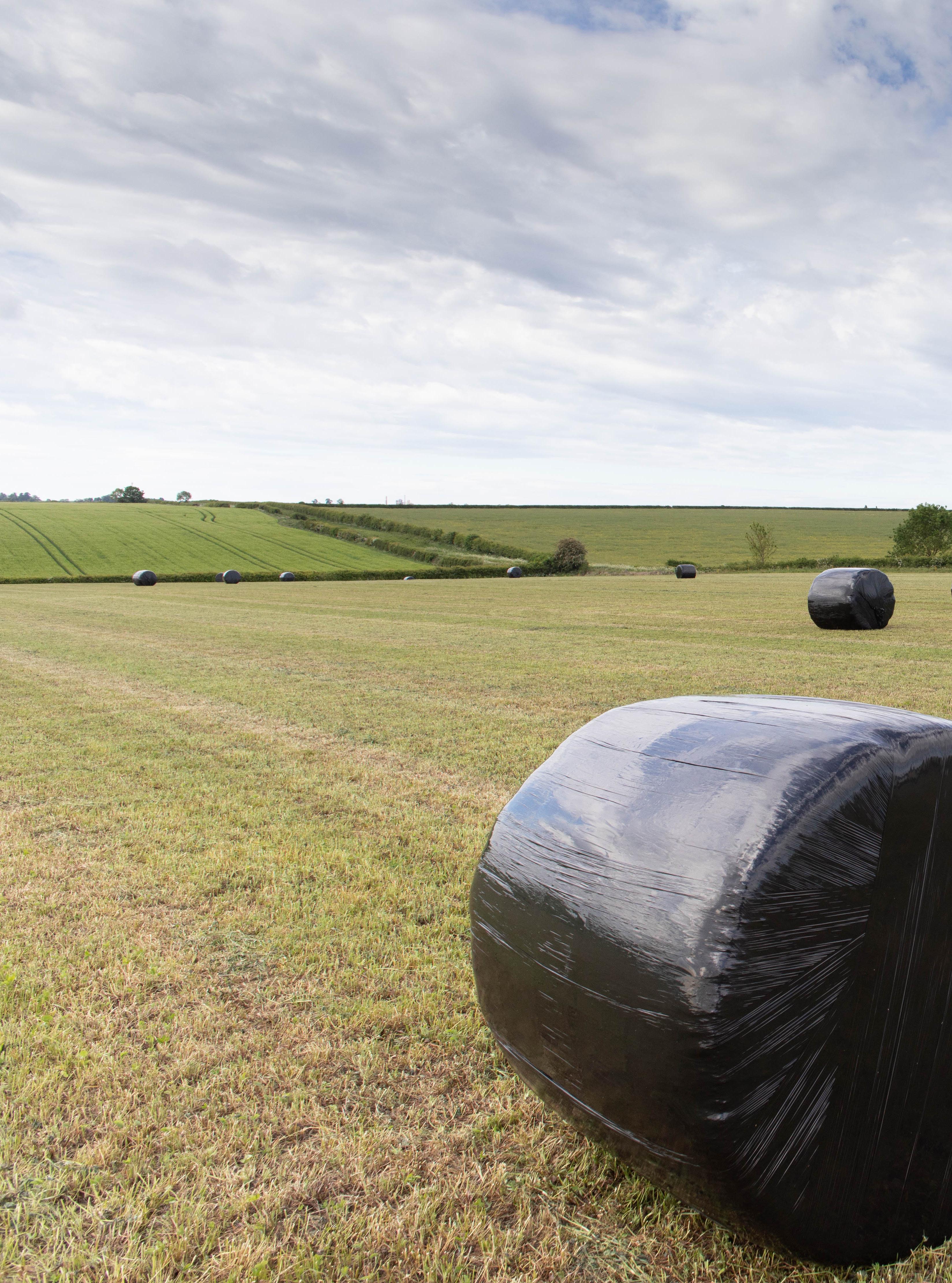 The first crop to be harvested for animal feed is grass. This green feed source provides cattle and sheep farmers the opportunity to mow their fields and bale it. If the bales are left unwrapped and without the black or white packaging it will be kept for hay. If however, the circular or square bales are preserved with the packaging this is called silage. The grass inside pickles slightly and is fed back to the animals in the winter time. If it is wrapped properly it can last up to two or three years. Another way of storing silage is to clamp it. This means a forage harvester will mow the grass, which is then chopped through the machine and comes out a side shoot. A tractor and trailer is waiting on the other side to collect it, where it is then taken back to the farm and tipped. The grass is then slowly raked into a large square pile, between walls (a clamp) and is stored under the plastic packaging.