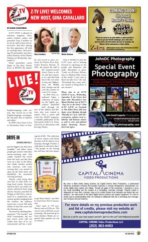 BY SUSAN FLEISCHMAN Z-TV LIVE! is pleased to welcome longtime Alexandria resident, author and journalist Gina Cavallaro to its on-air staff as host and interviewer. And she’s starting her first appearance off with an exciting show, interviewing TV personality and Alexandria business owner Monte Durham on Wednesday, September 9. Gina’s journalism career began in San Juan, Puerto Rico, at WOSO, the island’s