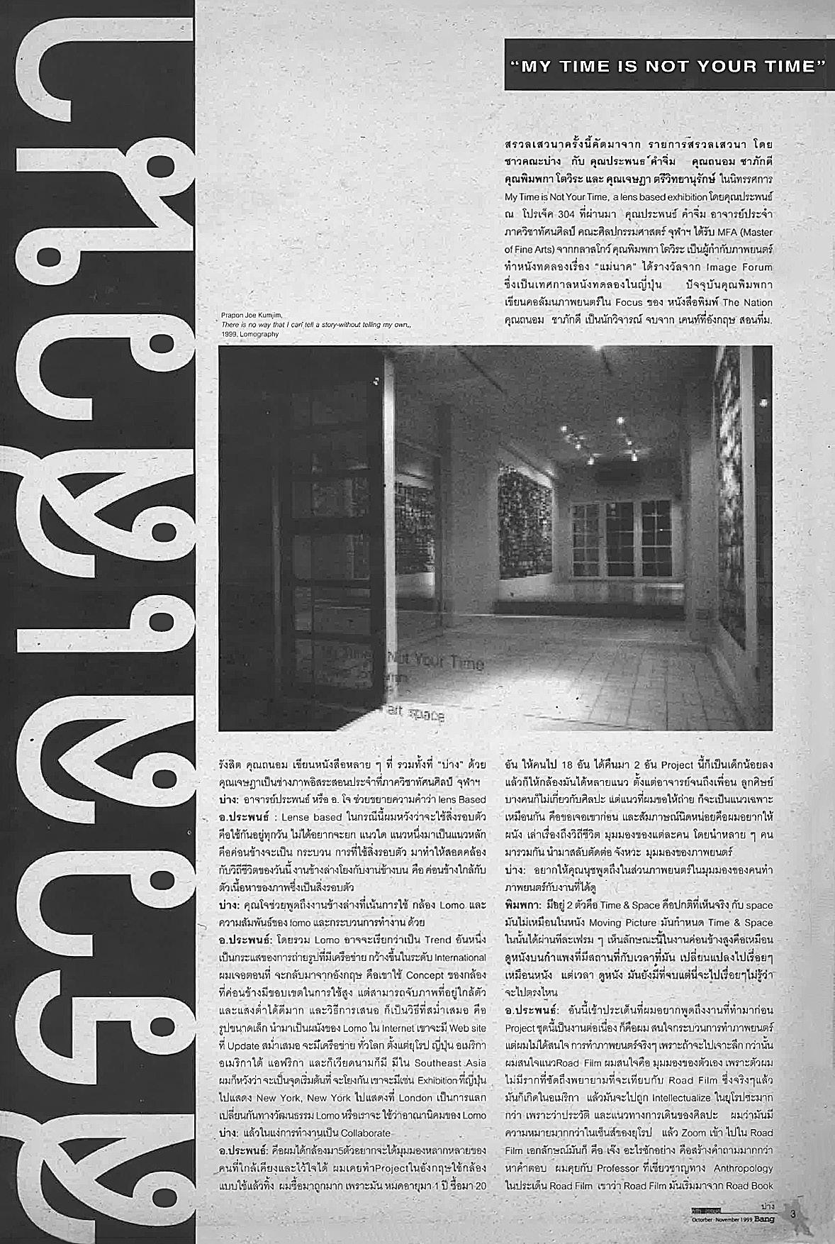 คอลัมน์ สรวลเสวนา ที่ถอดบทสนทนาจาก รายการสรวลเสวนา ในนิทรรศการ My Time is Not Your Time, a lens based exhibition โดย ประพนธ์ คำจิ่ม ณ โปรเจ็ค 304/ บทความ “อาชีพงานทัศนศิลป์กับผลกระทบต่อสุขภาพ”/ เรื่องแปล “นัวนัว บันทึกจากตาฮิติ ของ พอล โกแกง” ตอนที่ 3/ คอลัมน์ สุดเสียงสังข์สั่ง...สถานีสามเสน/ บทความ “Womanifesto”/ บทความ “ความเป็น Private และ Public ในวิถีชุมชน Fanatism-Agression-Taboo กับการนำเสนอในผลงานทัศนศิลป์”/ คอลัมน์ FLIM “นางนาก ปรากฏการณ์ที่เกิดขึ้นได้เพียงครั้งเดียว”/ ปิดท้ายด้วยการอัพเดทกิจกรรมต่าง ๆ ที่น่าสนใจในช่วงเวลาดังกว่าว