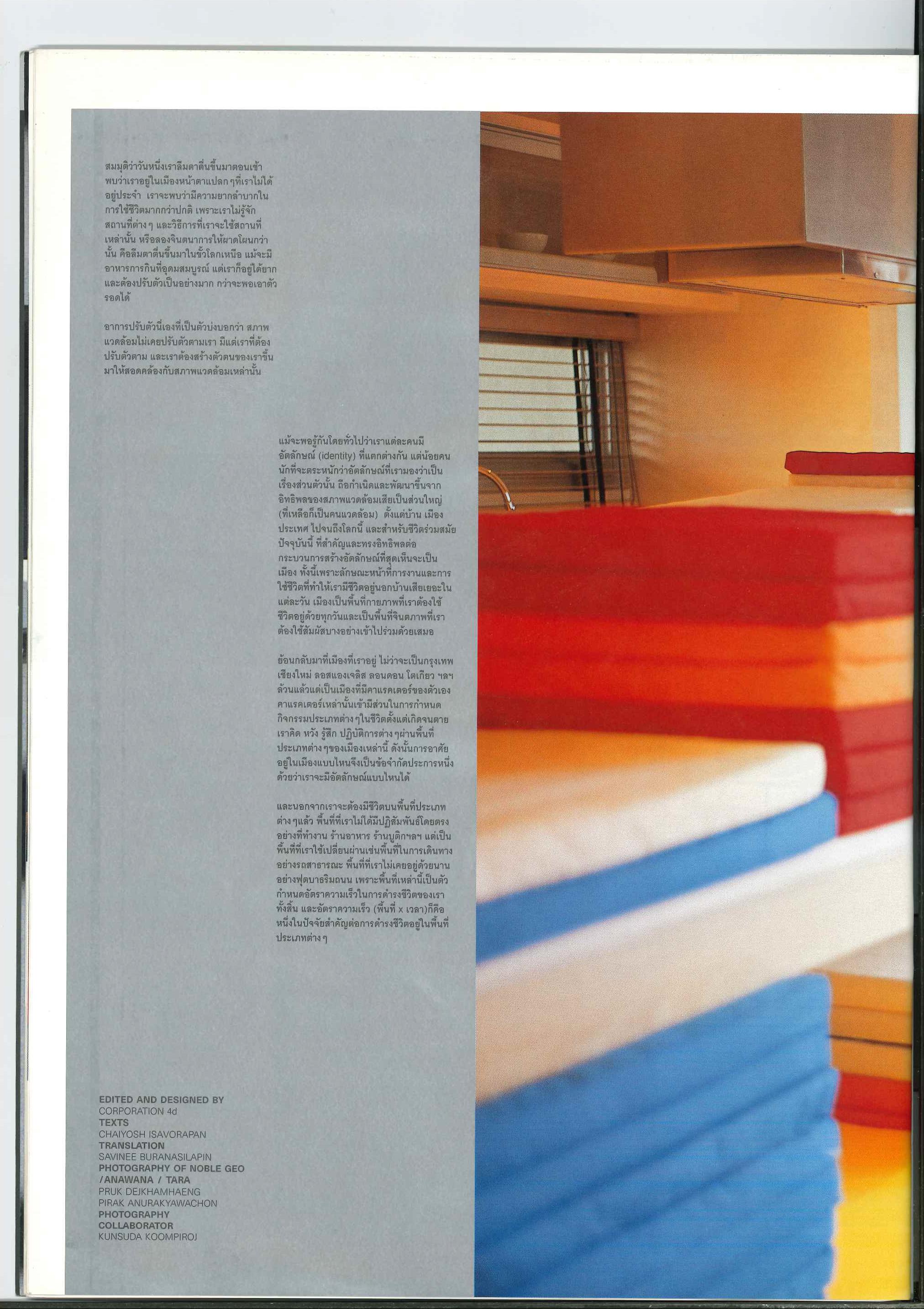 A special book produced by art4d in collaboration with Noble Development, exploring residential spaces by dividing them into different spatial dimensions. It includes works by invited designers and artists including Fashion Space by Pakamol Promphan and Mateera Komswadichai, Virtual Space by Athichoke Pimvirayakul, and Art Space by Arin Rungjang.