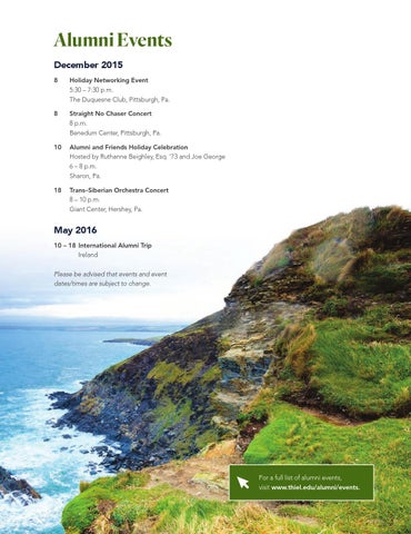 For a full list of alumni events, visit www.thiel.edu/alumni/events.