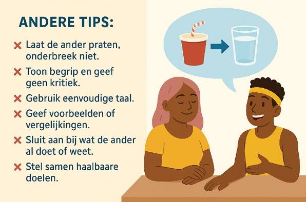Iemand aanmoedigen om iets te doen of vol te houden, bijvoorbeeld gezonder eten.