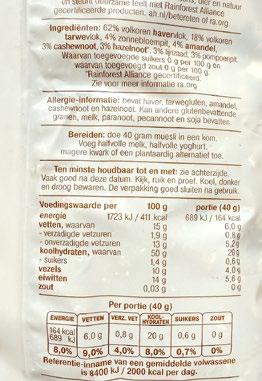 Informatie op een etiket over hoeveel calorieën, vet, suiker, vezels of eiwitten er in een product zitten.