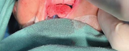 moderados a graves ou sem resposta em 10-15 dias.4,6,11 Indicações cirúrgicas incluem cianose, apneia, distúrbio alimentar grave, abertura piriforme < 8-11 mm, colapso do palato duro ou deformidades da linha média.1,7,9 A via sublabial com desgaste ósseo maxilar é historicamente descrita na literatura como o tratamento padrão. Entretanto, essa máxima tem sido contestada por novos métodos terapêuticos.