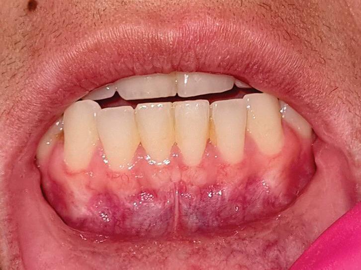 posicionada entre dentes adjacentes é conhecida como papila interdental. Muitas vezes, a gengiva inserida ao osso alveolar tem regiões de pigmentação que são ditadas por raça ou etnia. A demarcação entre a gengiva inserida e a mucosa alveolar livre é a junção mucogengival (Fig. 1-3).