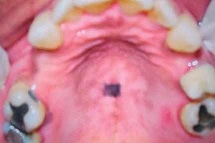 Fig. 1-20. Ulceração localizada em fundo de vestíbulo superior provocada por aparelho protético.
