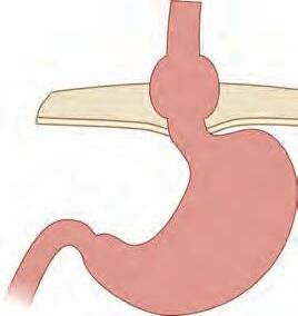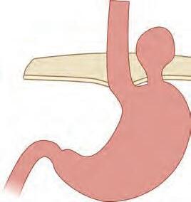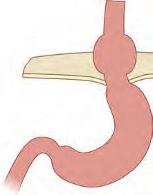 muitos casos, pode medir o comprimento vertical da hérnia e avaliar a abertura do hiato diafragmático (recomenda-se insuflação máxima em retrovisão por um tempo mínimo de 60 segundos para determinar a classificação de Hill) (Fig. 1-3).10