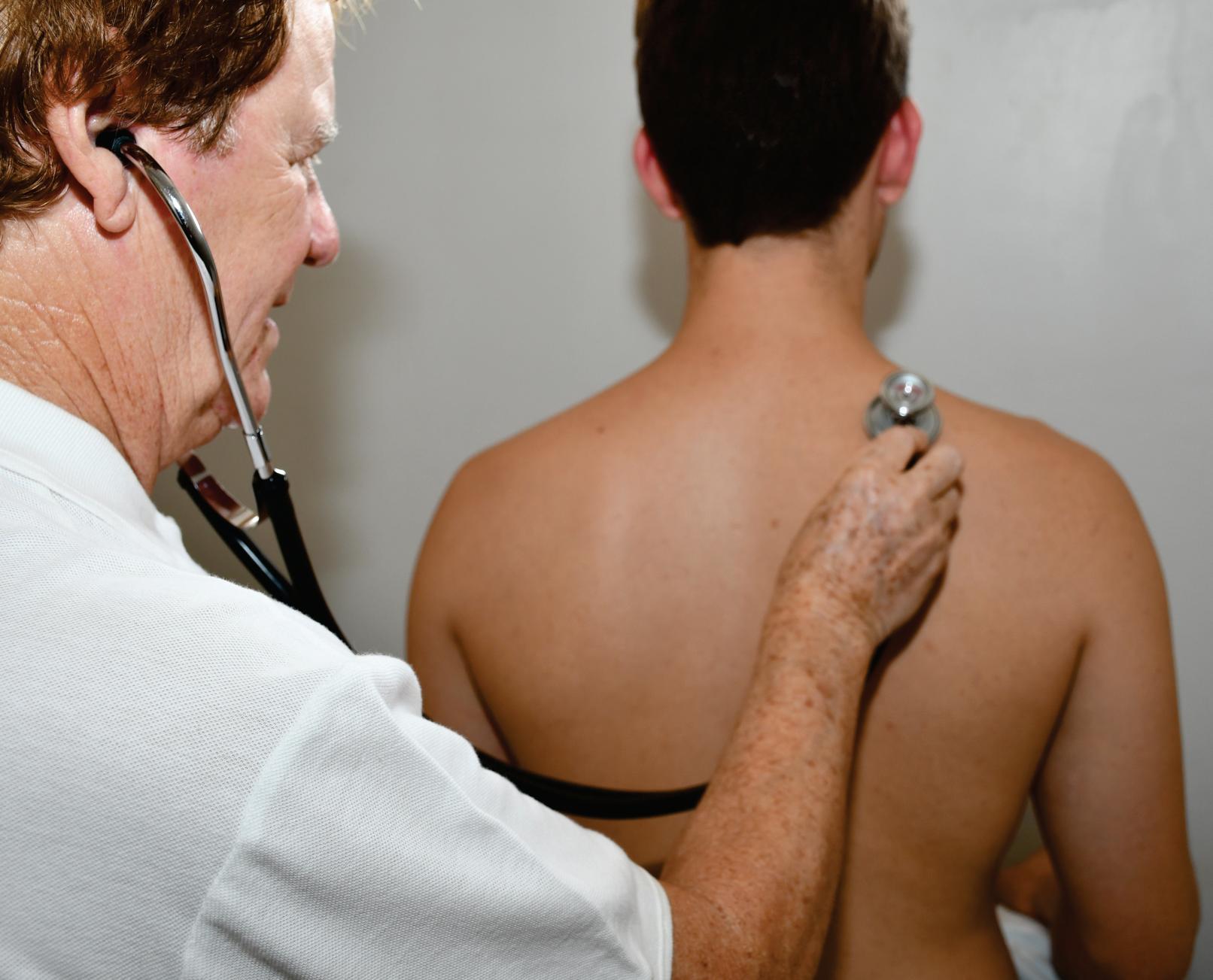 Ausculta: murmúrio vesicular presente, simétrico, expiração prolongada, sopros, roncos, sibilo, estertores crepitantes ou subcrepitantes, atrito pleural, pectoriloquia fônica e áfona, egofonia