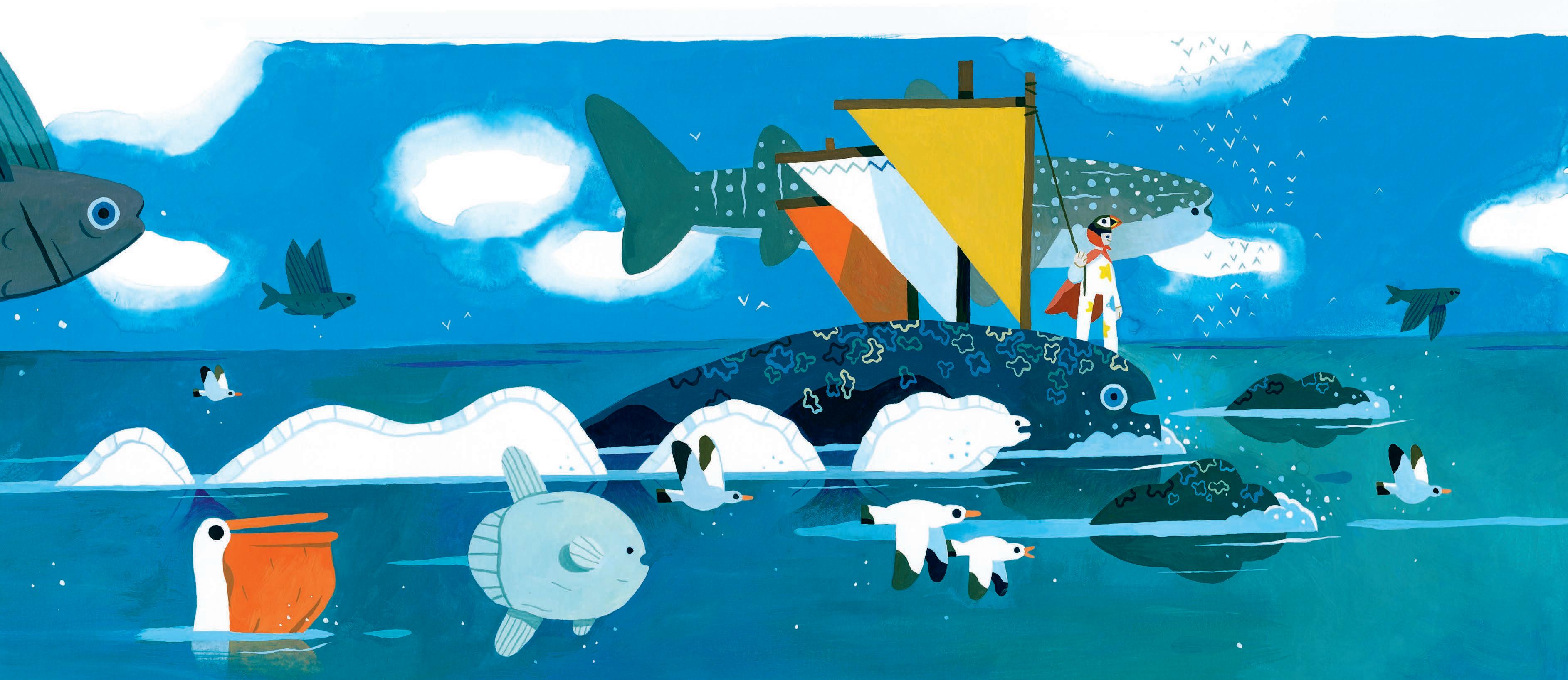 Un matin, un géant attend un enfant à la fenêtre de sa maison. Ils ne se sont jamais vus mais se reconnaissent immédiatement. Le géant prend l’enfant par la main et l’emmène pour un périple autour du monde. Lors de ce voyage initiatique et fantasmagorique, le géant protéiforme se métamorphose et change d’apparence au fil des paysages qui défilent et rivalisent de beauté. Cette aventure ne dure le temps que d’une journée mais changera à tout jamais les deux héros de cette formidable épopée. Poésie du texte, onirisme des illustrations, ce magnifique album raconte avec une grande sensibilité une histoire universelle : celle de l’éveil au monde.
