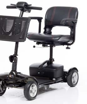 The Compass incorporates eFOLDi’s Secure-Turn® technology, which helps maintain stability when turning or travelling on uneven surfaces. Despite its four-wheel configuration, the scooter has a tight turning circle for everyday manoeuvrability.