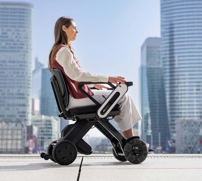 Engineered in carbon fibre, renowned for its strength and low weight, the powerchair builds on the successful WHILL concept to offer more performance, comfort and enablement.