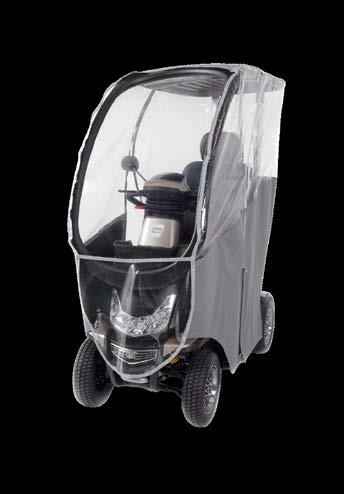 The user will find easy-to-use controls at their fingertips with in-built safety systems creating confidence in any situation. The solid canopy has a strong tubular framework which fixes directly onto the chassis with a perspex screen and roof to keep the user covered in all weathers. Detachable clear vinyl sides make the Breeze S usable all year round.