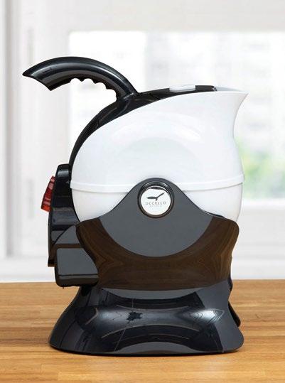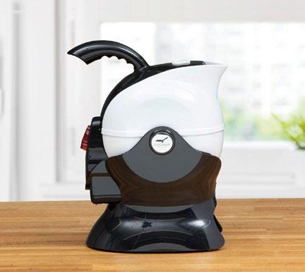 “The kettle vessel sits securely in a rotating cradle, allowing the user to pour hot water safely and with full control, removing the need for awkward or heavy lifting. Developed with user comfort and safety in mind, the ergonomic handle is shaped to distribute weight evenly across the arm rather than the wrist or fingers, while the extra-wide spout makes it easier to fill directly from a tap or jug.