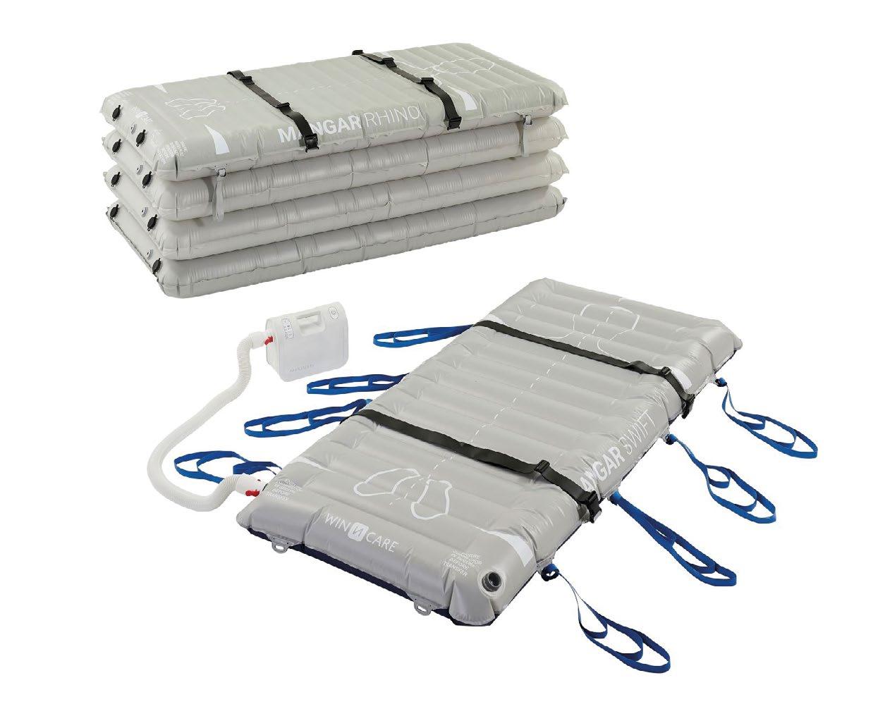 The Mangar Rhino Lifting Cushion lifts a person in the supine position from the floor to the height of a bed or stretcher. It is powered by the Mangar Airflo Duo a stateof-the-art air pump, which uses both battery or mains power for maximum portability and versatility. Mangar Swift Transfer Slide is used for lateral transfers and repositioning patients in the supine position with minimal moving and handling force required.