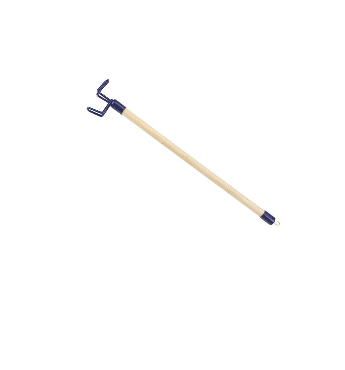 The wooden shaft provides a long reach of 46cm to minimise movement of arms or shoulders. It features a plastic coated "S" hook at one end, helping to retrieve clothing and a small "C" hook at other end for pulling garments on/off, for grasping belt loops or for pulling up zips and straps.