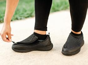 The wearer can keep them all in, or remove one, two or three to create more space in the shoe. The shoe is also easy to get on and take off. The side zip (with an easy-to-grab pull tag) runs along the length of the shoe, opening it up wide. There is a roomier upper to accommodate wider feet, larger orthotics or swelling. Available in sizes 4-13, this shoe is eligible for VAT exemption.