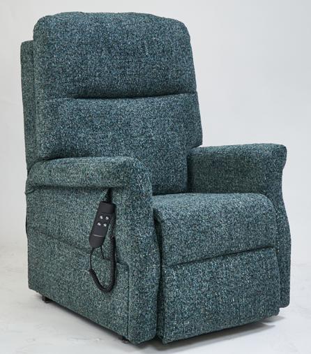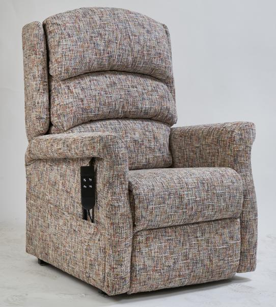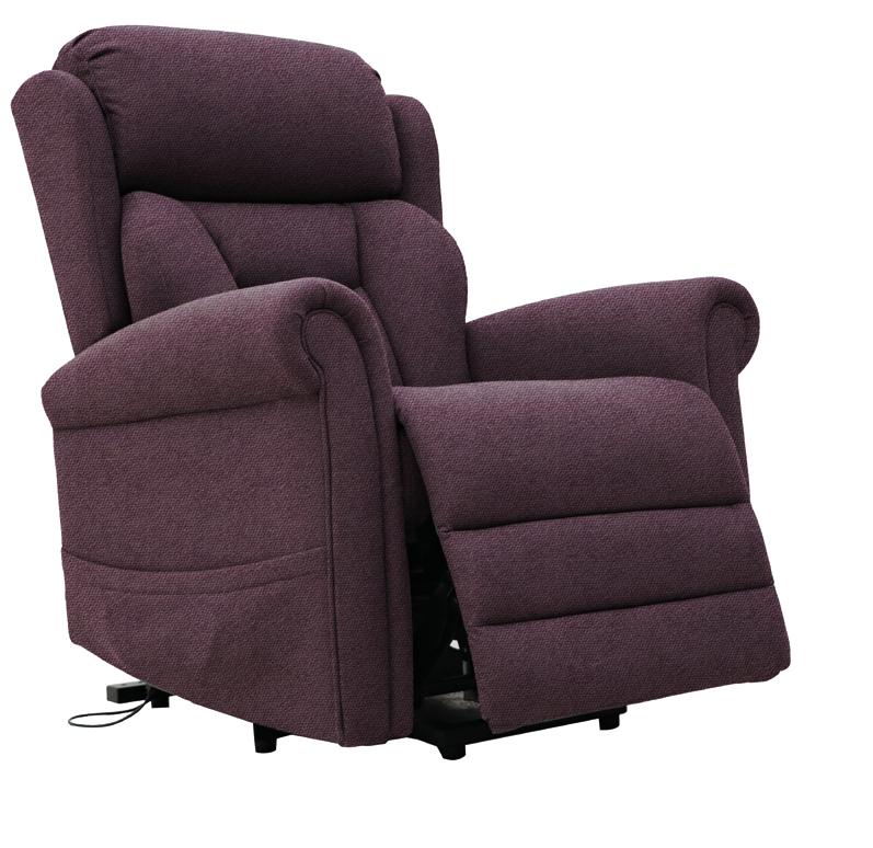 Available in silver and stone and three sizes, the Premier Breeze Riser Recliner comes in the Dorchester style of lift chairs featuring scrolled arms, a waterfall back and elegant wings. Lithium battery back-up ensures the chair is powered during outages.