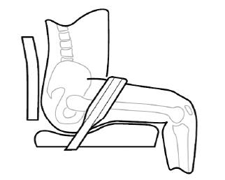 It is important that pelvic positioning belts are positioned in front of the greater trochanters for those with a tendency towards a posterior pelvic tilt (Figure 7). Not only is this a safety matter, to ensure the belt length is sufficiently short to prevent submarining under the belt, but also allows sufficient
