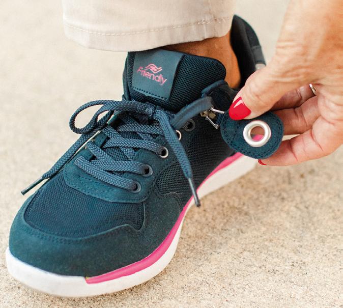 Friendly Shoes’ lightest shoe, the Force is easy to put on and off thanks to a deep side zip that opens the shoe up. The wearer can remove the insole to make space for a custom orthotic, then slide the foot in and zip back up. The zip toggle has been designed for people with reduced hand function.