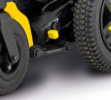 suspension, puncture-proof tyres and castors and an adjustable seat, back and tilt angle. Available in eye-catching mudguard colours, the Rialto features a swing-away joystick.