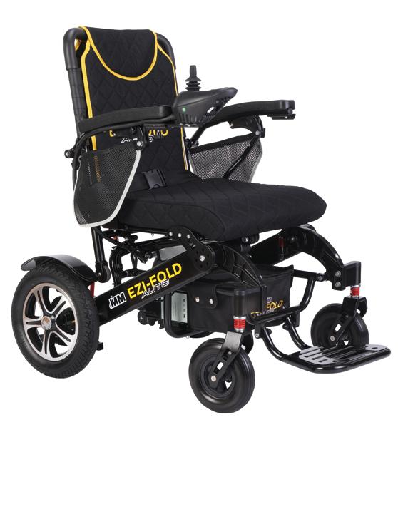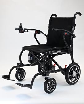 “This powerchair delivers durability without compromising on ease of transport with its staggered split motors allowing the chair to fold into a compact size. It is powered by two 150w brushless motors and features an airline-friendly 6.6Ah lithium battery, which remains securely in place while folding and does not need to be removed.
