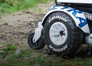 The XT4 is the most extreme off-road powerchair, featuring front and rear suspension and servo-powered steering to navigate any terrain.
