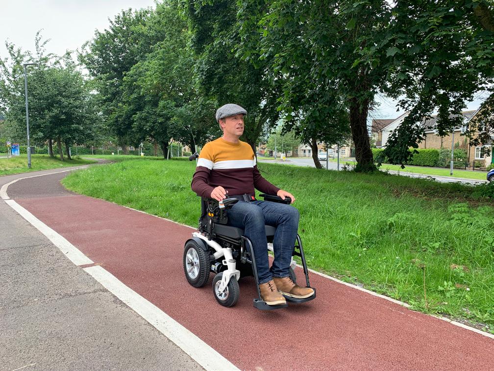 “As this powerchair is made of carbon fibre, it is ultra-lightweight at only 14.5kg (without the battery). It offers a sleek, modern design that blends style and functionality. It is ideal for use at home or outside for occasional use going out with friends and family.