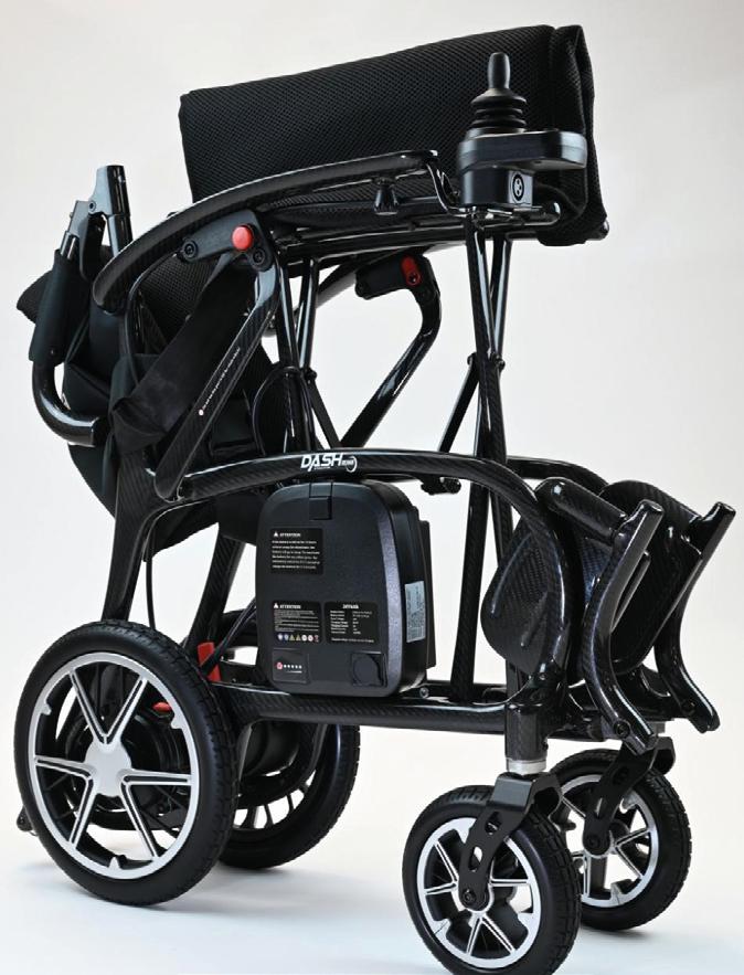 “The Dash Carbon Pro is an ultralightweight folding powerchair. Weighing 11.9kg, this carbon fibre powerchair claims to be the lightest of its kind on the market, combining exceptional strength and minimal weight.