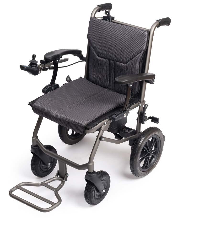 With an approximate weight of 17kg, this is a lightweight alternative to a full power chair and is easily transportable with its quick-release wheels.