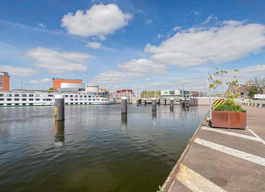 Normaal gesproken kijk je vanuit deze maisonnette over de auto’s richting de kade, de brug en de sluis. Wordt de blik automatisch naar de grandeur van het voormalige gemeentehuis of de spits van de Oostzijderkerk geleid.