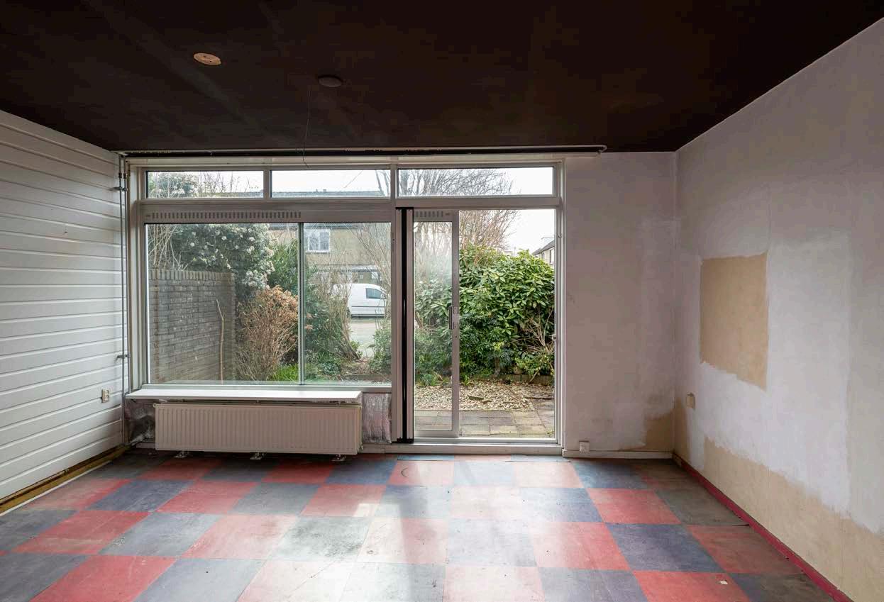 De woonkamer is tuingericht en door het grote raam valt het daglicht optimaal naar binnen. Het betreft een aangename ruimte met aan jou de taak om na te denken over de afwerking. Momenteel beschikt de woonkamer over een schuifpui naar de achtertuin.