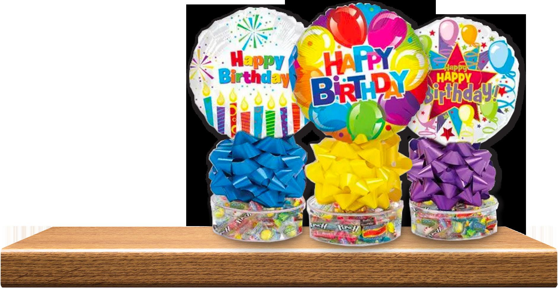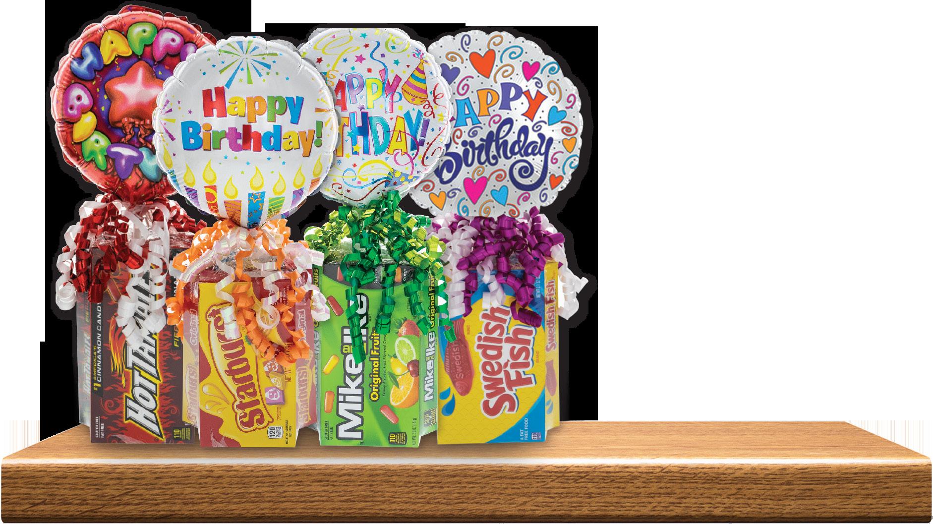 This Happy Birthday bouquet comes complete with a candy variety mix, a balloon, and a reusable acrylic candy dish. The perfect gift to celebrate someone's special day!