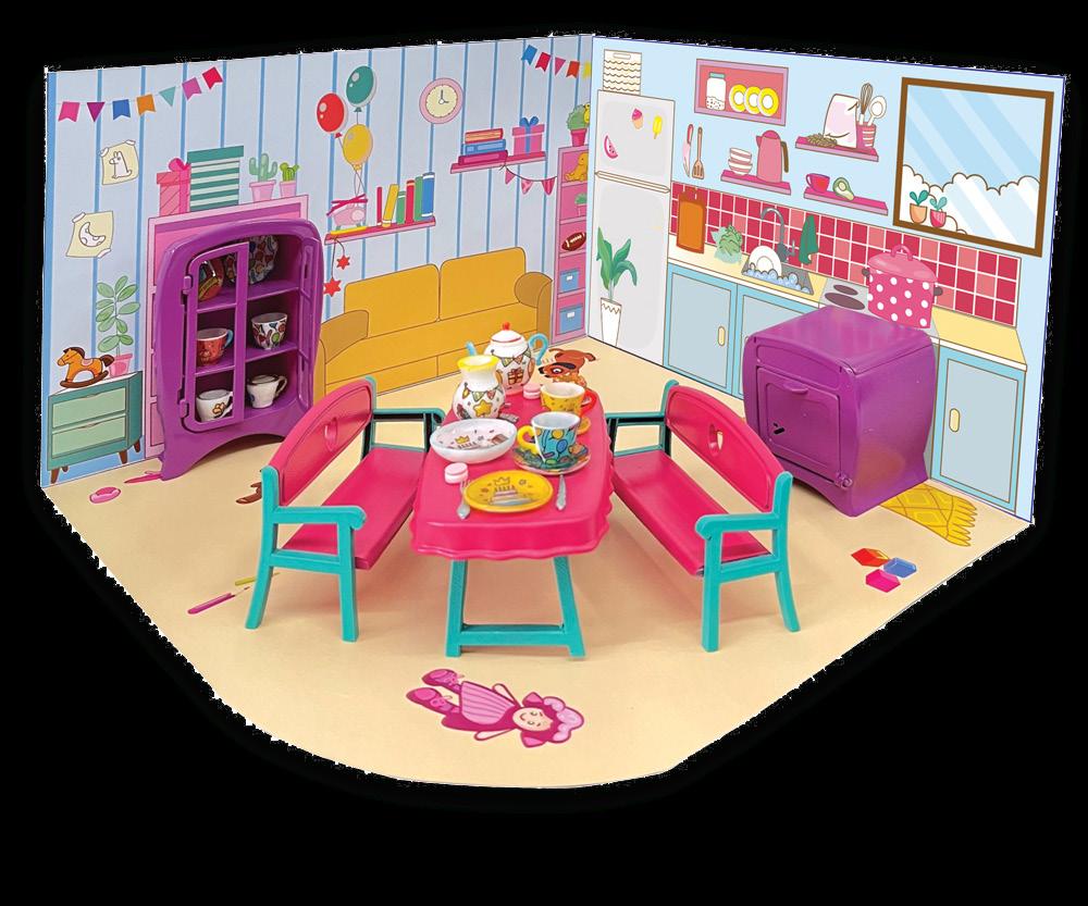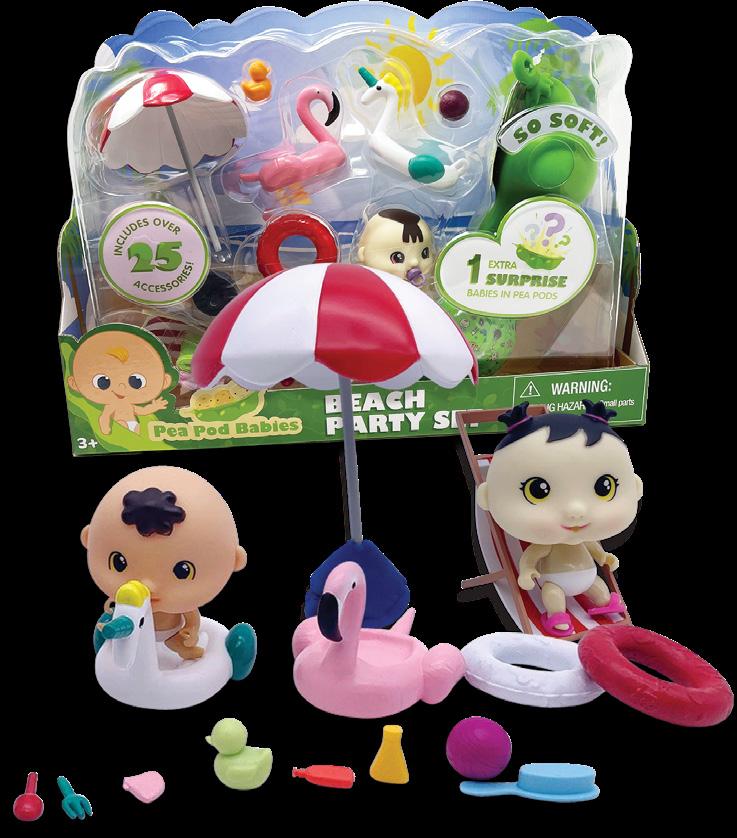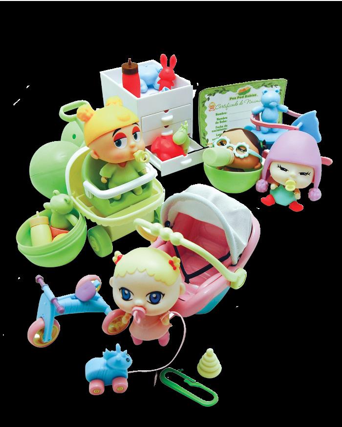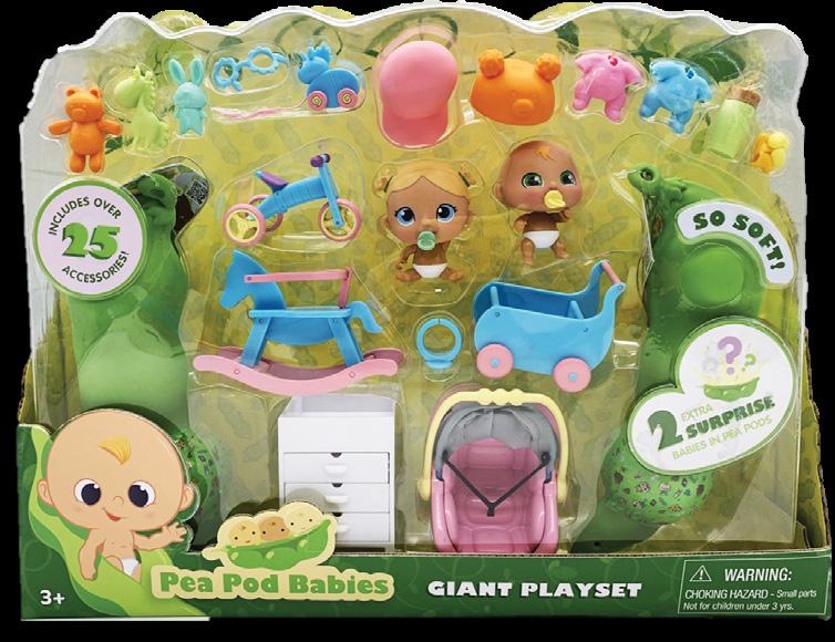 - DIM 15"W x 12"H x 4.5"D - Over 25 pieces, plus 2 surprises inside! - Includes 4 babies plus accessories!
