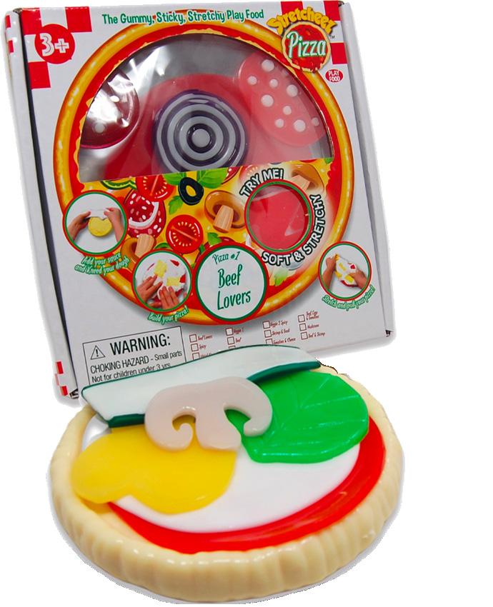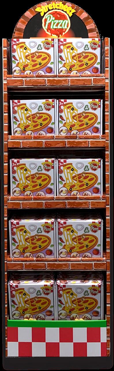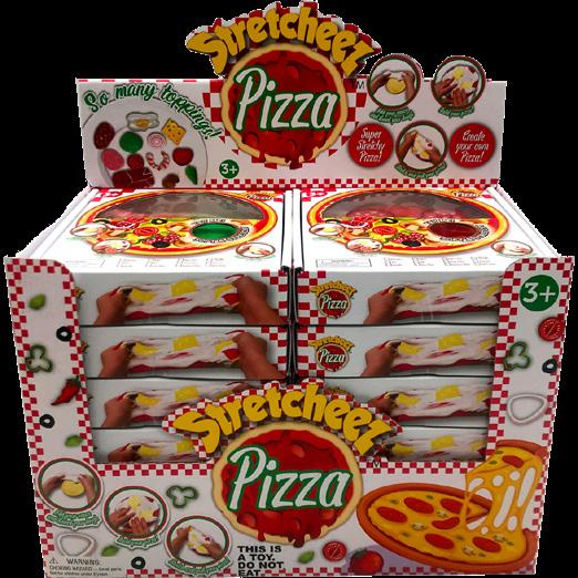 STRETCHEEZ PIZZA (PDQ) #S563 | Cost $6.50 | 12 pc min | 3+ Available: In Stock Now - PDQ DIM 15"W x 11"H x 8"D - PDQ holds 12 assorted “try-me” packages - Build your own stretchy pizzas!