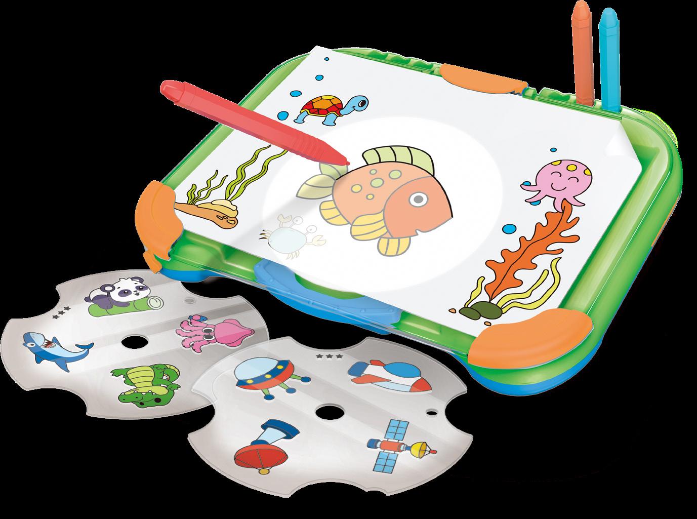 - Deluxe, light-up drawing pad with 8 templates; special markers