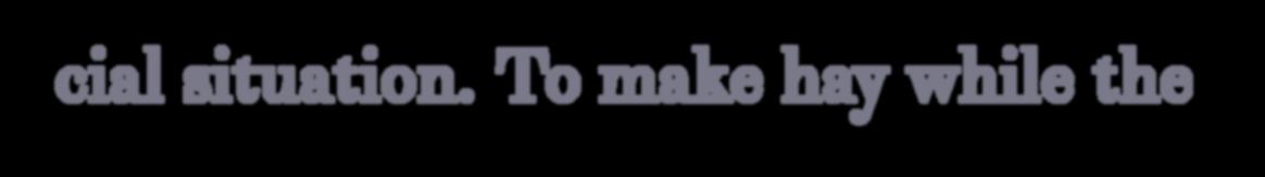 Makehay whilethe sun shines” is a popular saying thatis essential for being in control of your own financial situation. To make hay while the sun shines means that you take advantage of the chance to do something while conditions are good.