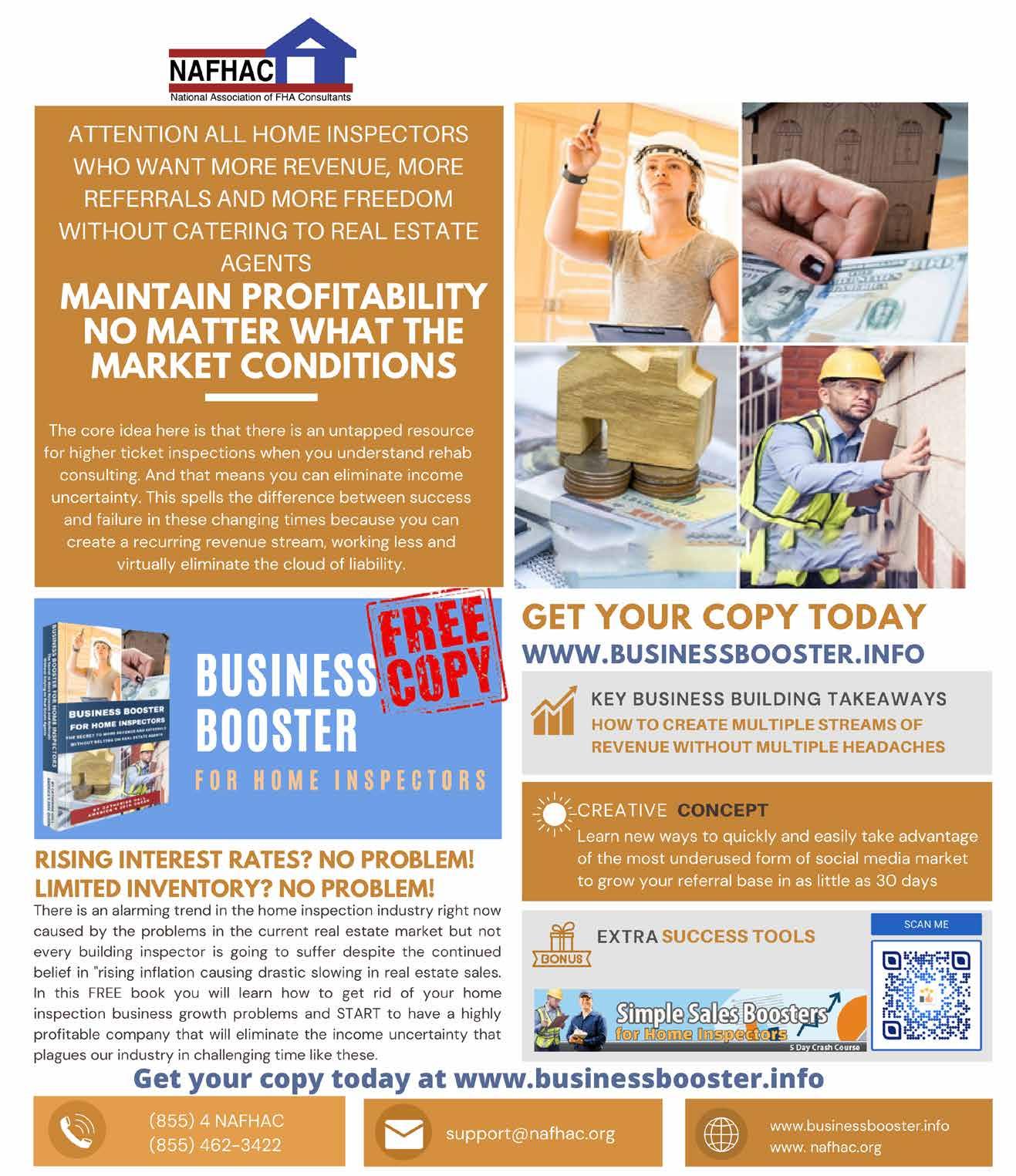 1. Market. If you market your inspection business every day you don’t have an inspection to do, you’ll eventually have few days that aren’t booked. In this way, the inspection business is self-leveling: the slower you get, the more you market, so the busier you get.