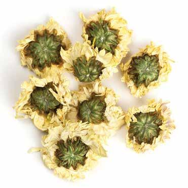 Wild Chrysanthemum flowers are cultivated from the mountainous area of Wan Nan in southern An Hui province. It blossoms during winter, filling the air with the natural sweet fragrance of Chrysanthemum flowers. This tea is wellknown for its cooling properties that help to decrease body heat and is recommended for those with fever, sore throat, and other heat-related illnesses.