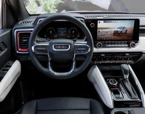 The 2023 Canyon’s exterior is pronounced by its high clearance, trimmed corners and the allnew integration of sheet metal for a completely unique look. The front fascia features full LED exterior lighting, relocated fog lights and daytime running lights. The 2023 model year also introduces an available sunroof — a first for the midsize truck.
