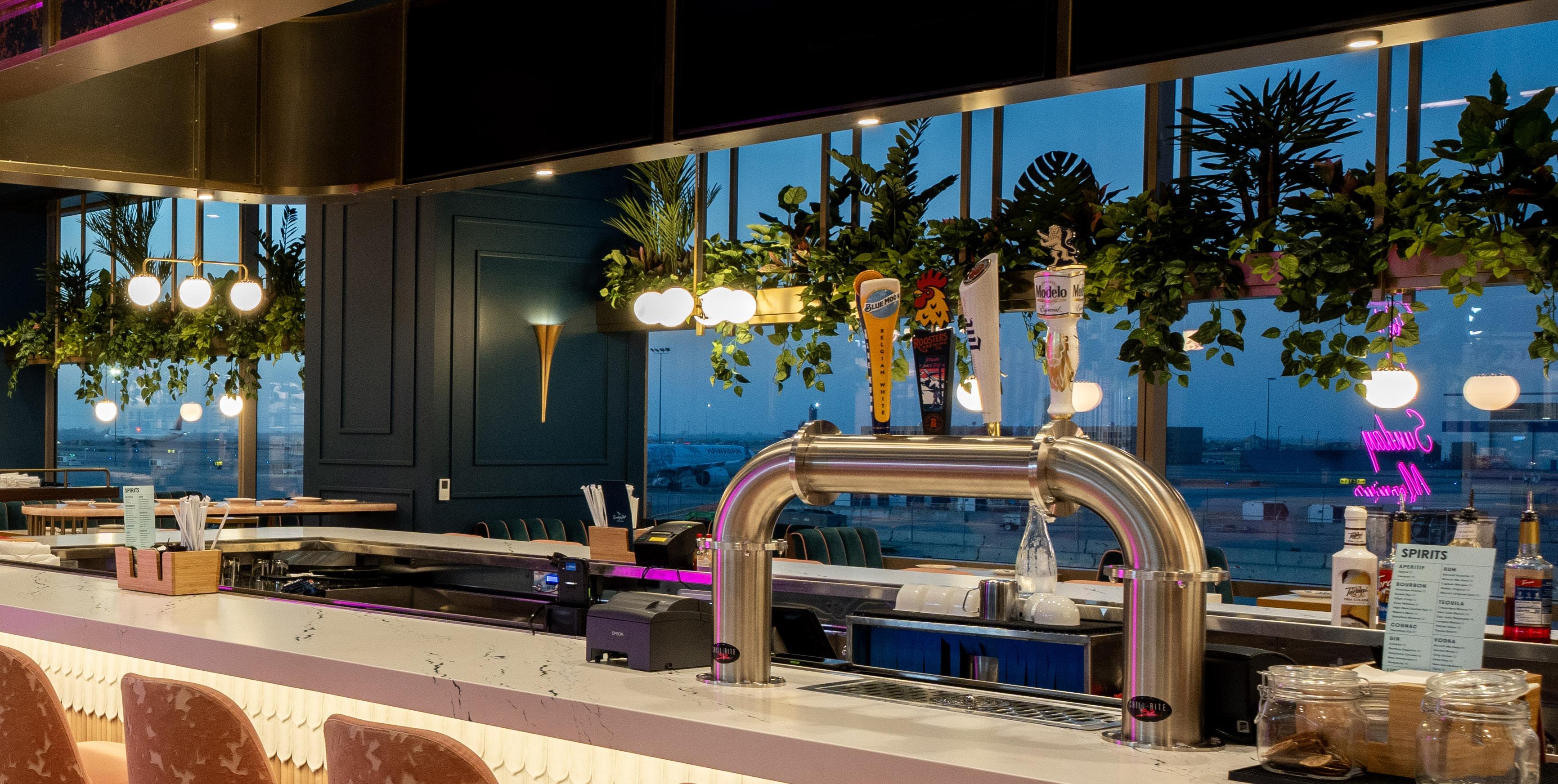 Truly one of the most unique restaurants in or out of the terminal, Sky Gamerz allows travelers to spend dwell time gaming. A unique blend of the past and present, the space is infused with true ‘80s vibes. Blue laser lights, pink neon signage, and more games than one can play on a layover await guests. Sky Gamerz doesn’t just bring fun—it also delivers quality food and cocktails that fit the restaurant's theme.