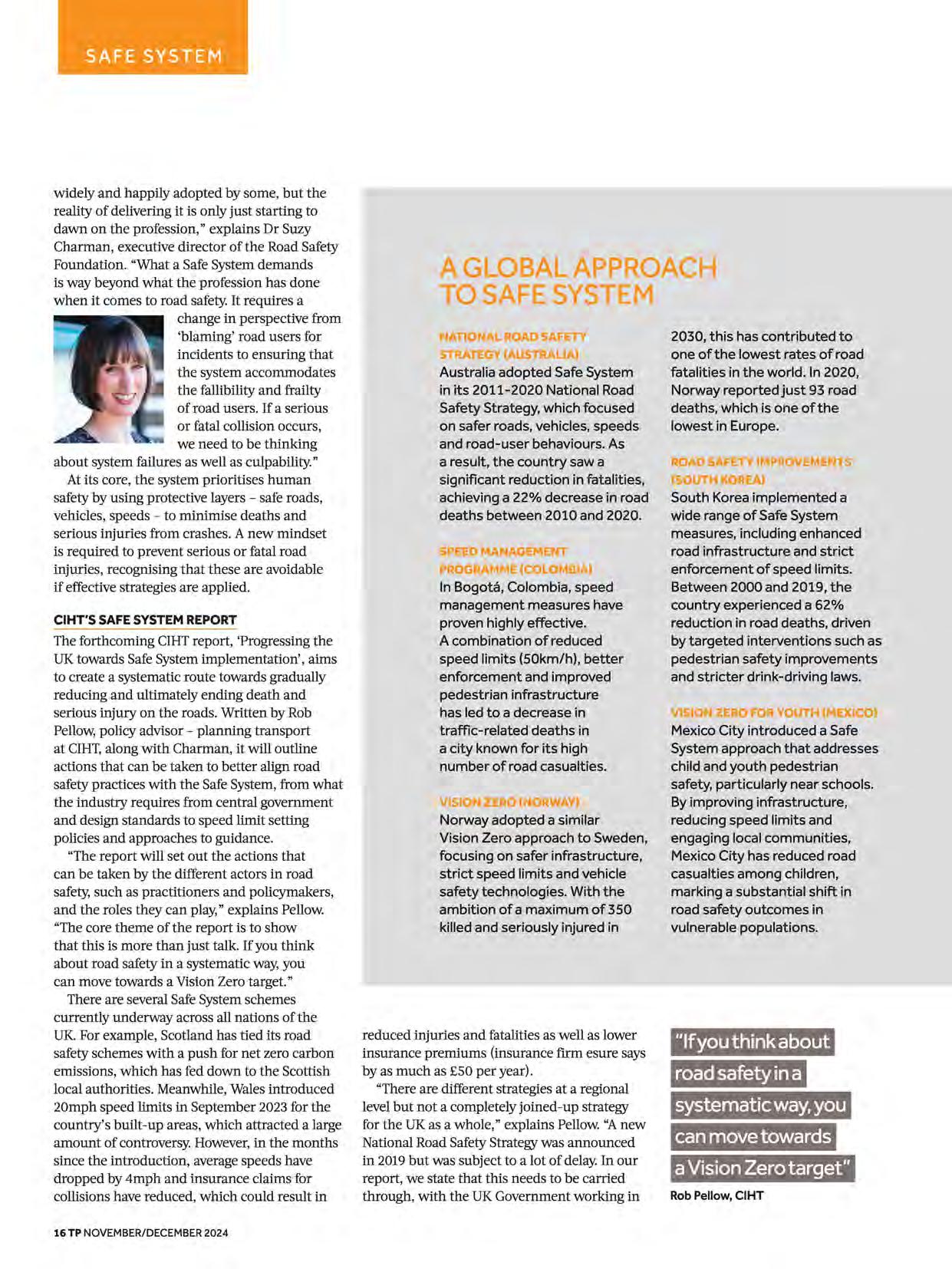 Adopting a Safe System would ensure road users travel at an appropriate speed and support compliance with speed limits from the outset. CIHT fully understands the importance of the Safe System and will be publishing a report on it in November 2024. Titled 'Progressing the UK towards Safe System Implementation', the report will explain why the Safe System is vital for safe travel.