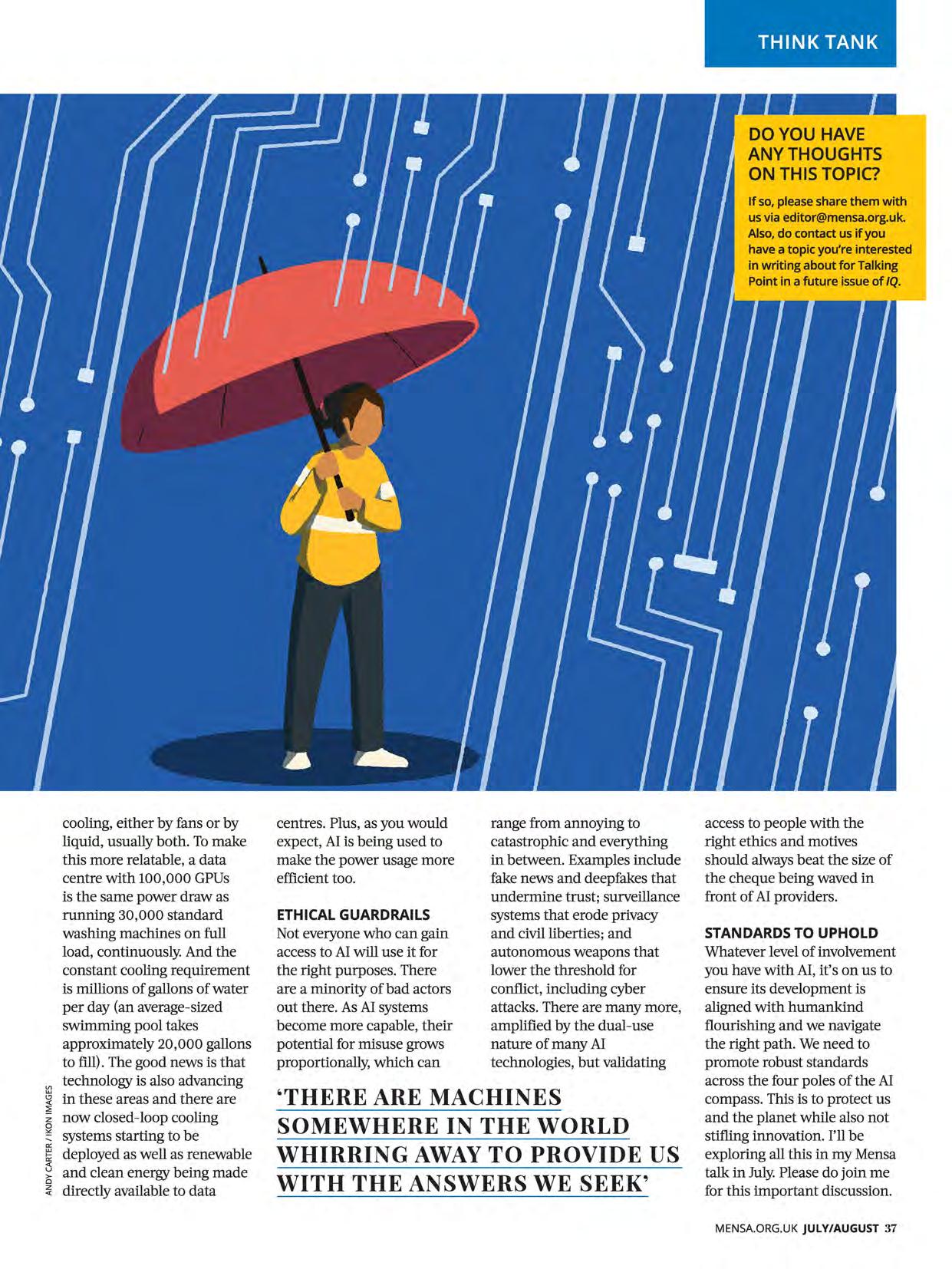 Talking Point has become a popular feature, with each instalment followed by a free online talk for members. This issue, technology expert Karl Havard explores the ethical implications of embracing AI (pp36-37), and you're invited to join the live event on 17 July. Meanwhile, Dr Sonja Falck's Intelligent Relationships column (p40) celebrates the differences between us all as individuals.