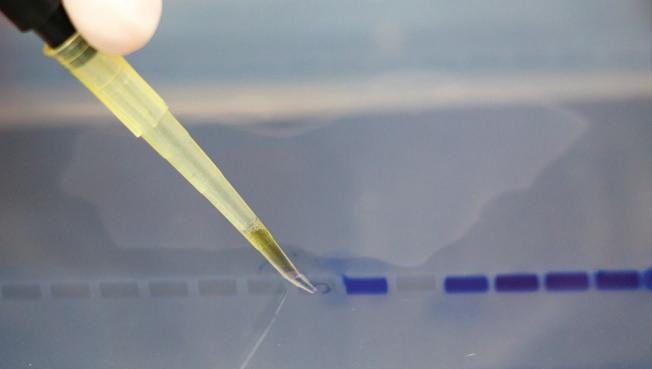 Next you want to find out how successful your extraction and PCR process has been before moving on to the sequencing stage. We use a method of gel electrophoresis, separating DNA molecules based on their size, which allows you to see how much amplified DNA you have. If you think there’s enough, you move on to the next step.
