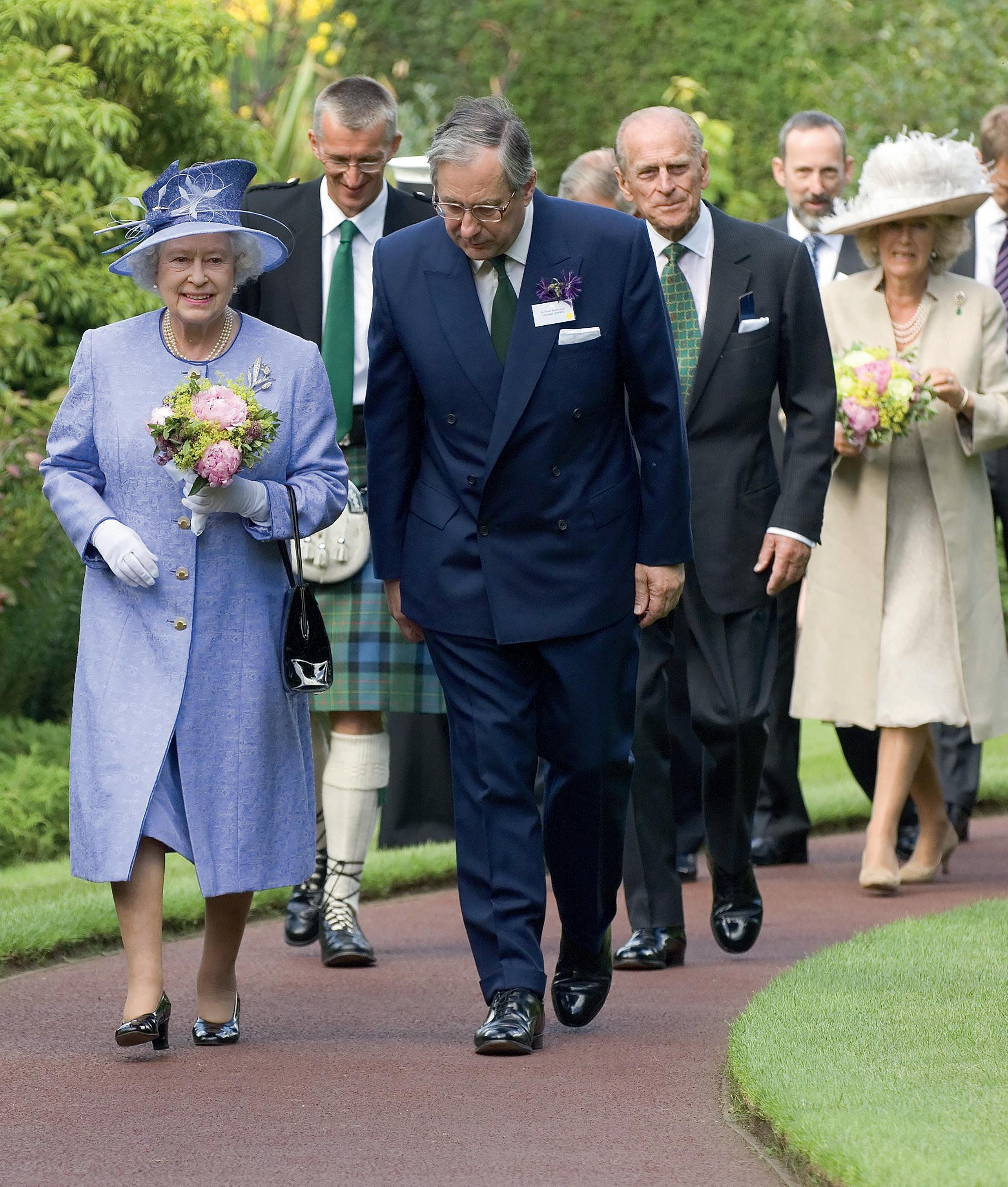 The Garden was honoured to welcome Her Majesty The Queen on several occasions during her 70-year reign. Her most recent visit was in 2010 to open the John Hope Gateway. Her Majesty is seen here leading the way during a visit in July 2006 to unveil the Queen Mother’s Memorial Garden – a living tribute to her mother, who had been patron of the Garden. Queen Elizabeth is followed by the Duke of Edinburgh and Camilla, now the Queen Consort.