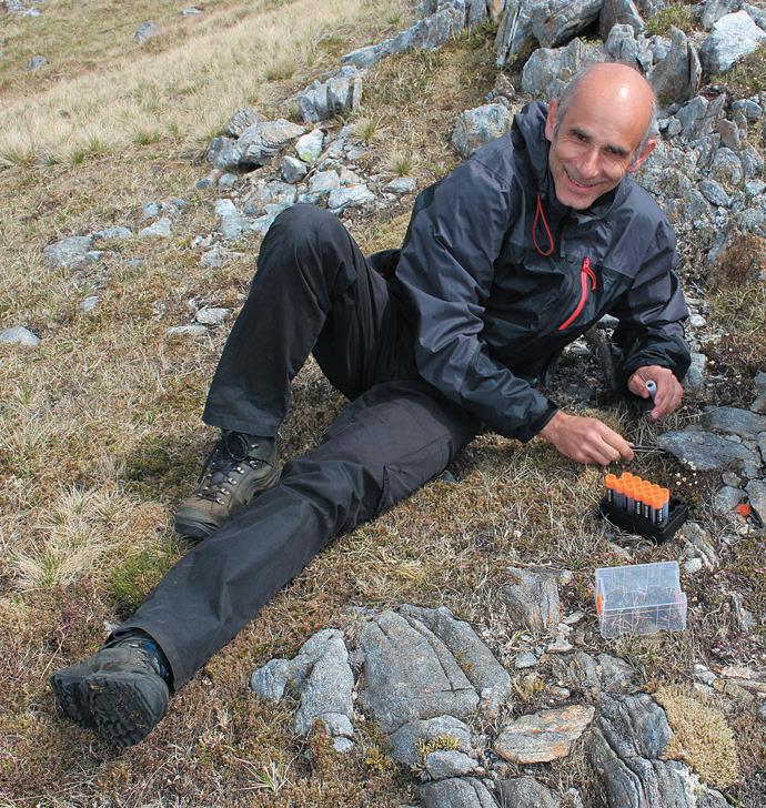 Clockwise from above: spear thistle (Cirsium vulgare); sampling apples in the Garden; the Garden’s molecular ecologist Dr Markus Ruhsam working in the field