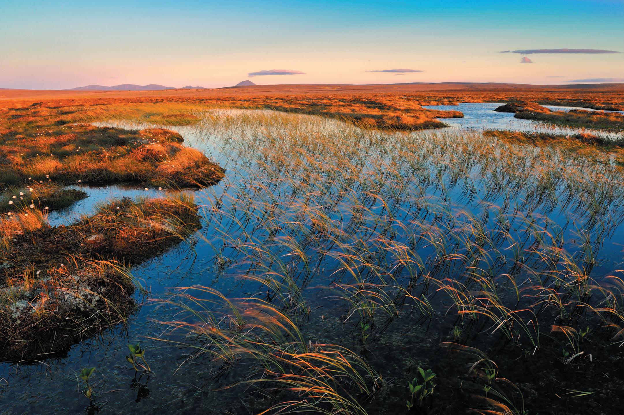 Blanket bog, The Flows National Nature Reserve and (inset) the Alpine blue sowthistle translocation team, Cairngorms National Park